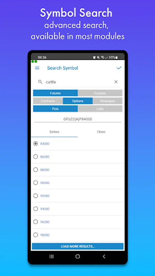 Options Chain can display all the options for any futures contract with the ability to trade individual options directly from the module.
