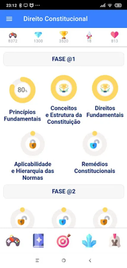 Have you ever wondered how much progress you have made studying and solving questions for public examinations. How long to be nominated? The study for competitions is a Project whose beginning seems very clear, but at certain moments it is not known if it is in the middle or near the end. The App/Game Acertei tries to help you in different ways to get situated in this Project.