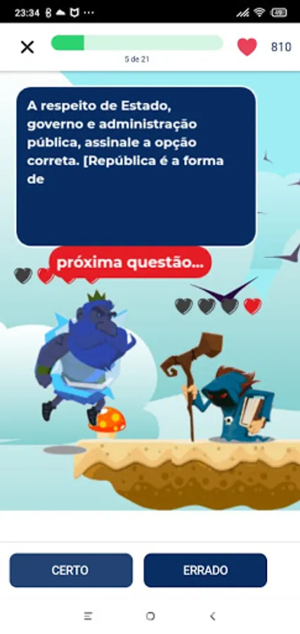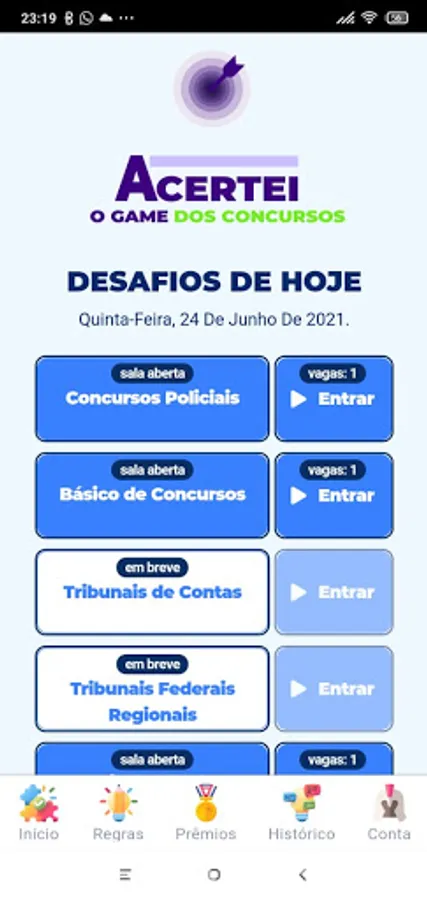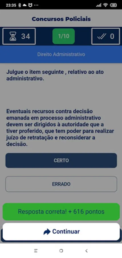 7. Here we present something new on the contest questions apps and sites. Online disputes (in real time) with contestants who are using the app. These challenges are grouped by areas (fiscal, courts, police, and others) and as the challenge progresses you can track your ranking in relation to other contestants. The score is associated with the difficulty of the question and the time it takes you to answer it.