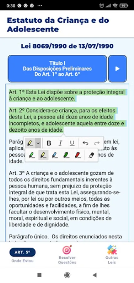- Marking the text of the Law (italics, bold, colors, neon, etc.);