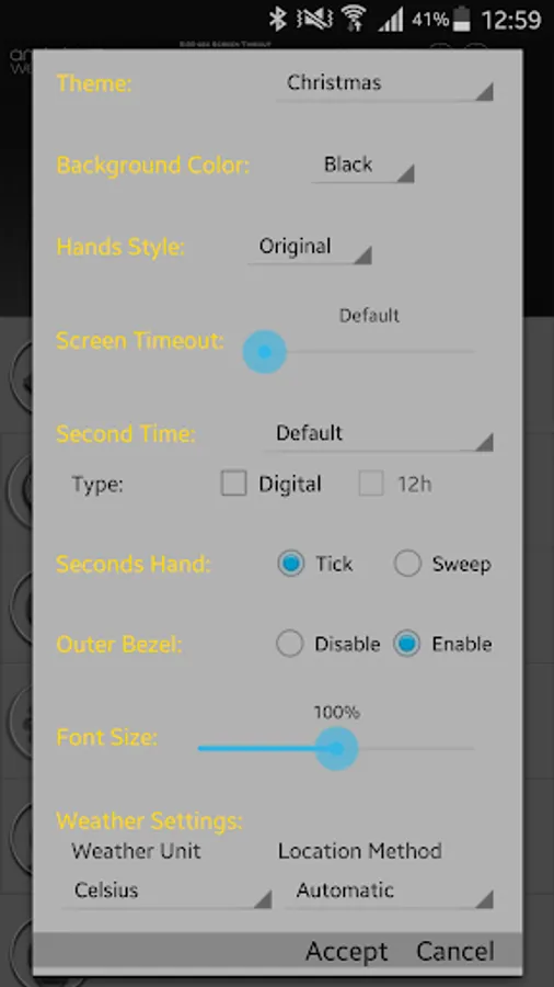 IMPORTANT: Weather will display "N/A" after first install until you set you preferred weather type - Manual or Automatic! If you don't get any weather information please use "Refresh Weather" button.