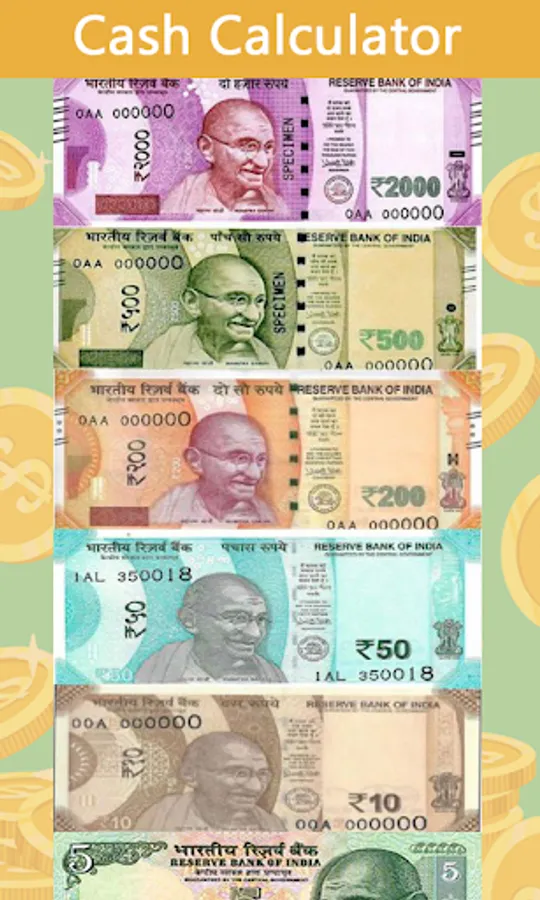 Cash Calculator application happy to helps you to calculate your total number of notes or money.