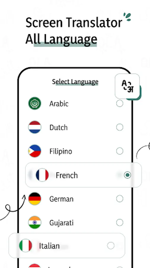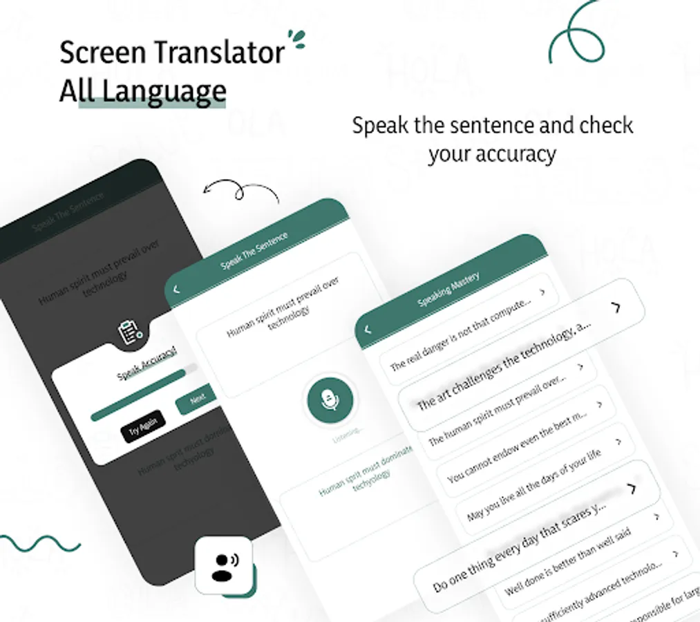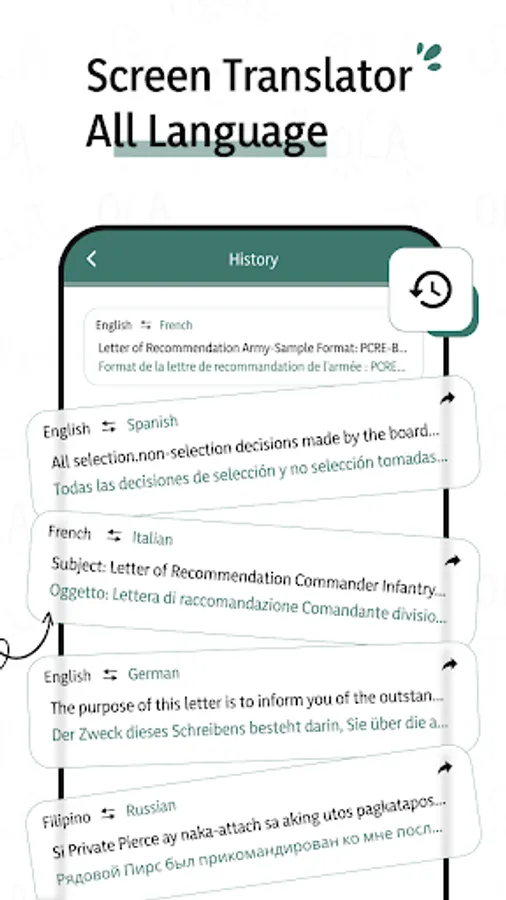 * Capture screenshots from your phone screen, one click to translate in any language.