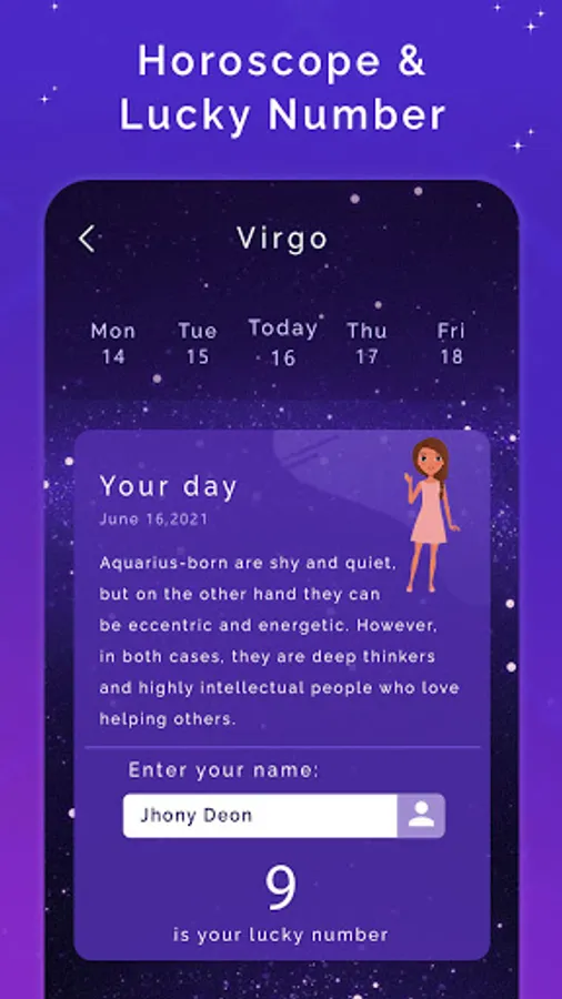 This application covers all 12 zodiac sings like Aries, Taurus, Gemini, Cancer, Leo, Virgo, Libra, Scorpio, Sagittarius, Capricorn, Aquarius & Pisces.