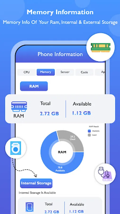 - Information about linear acceleration and gravity sensors, gyroscope, proximity sensor.