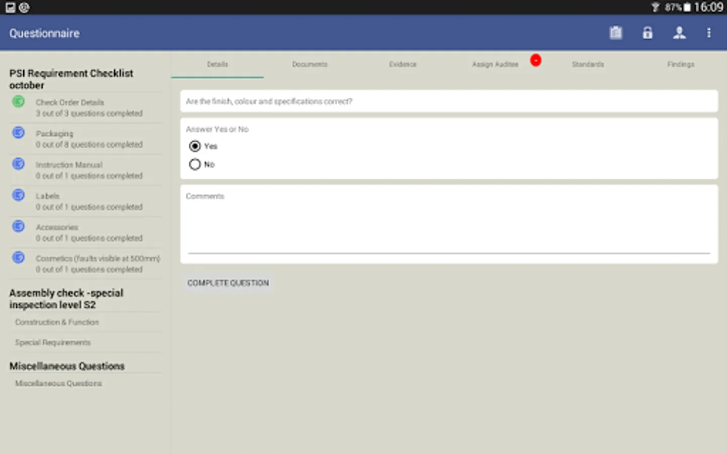 iEQMS Auditor gives you access to your EQMS system and assure accurate question completion and evidence collection, even on the move. Your team respond to questionnaires that comprise simple, recognisable checklists of questions that you devise, providing responses in the format that you require and instantly attaching any mandatory evidence such as photos, videos or sound recordings.