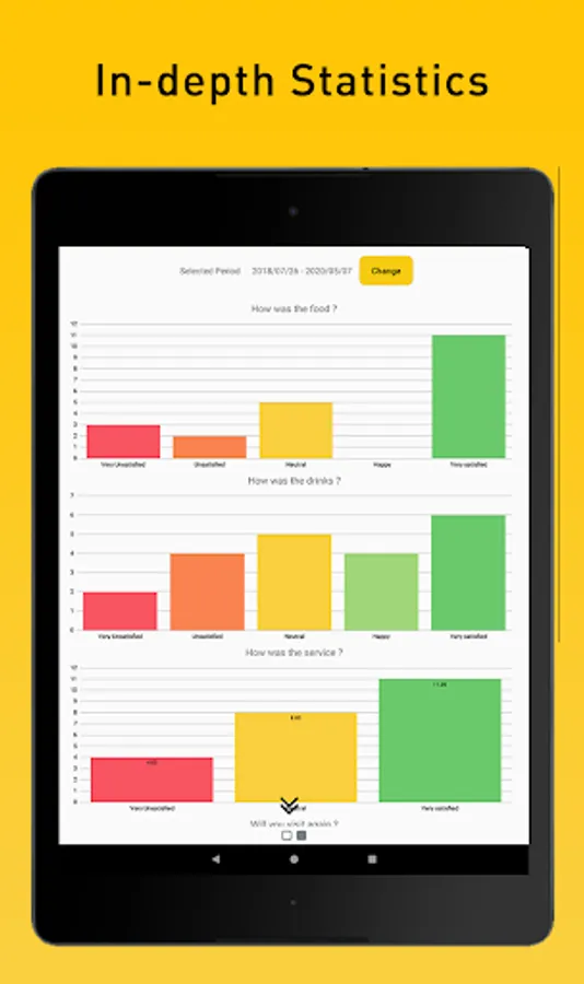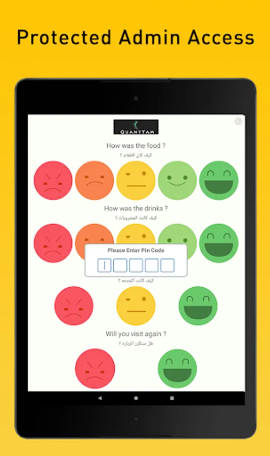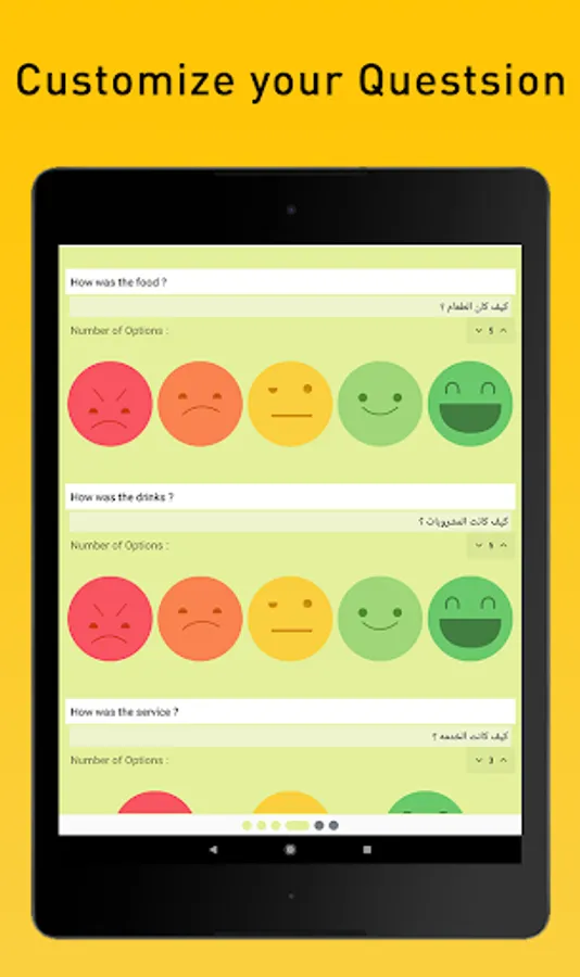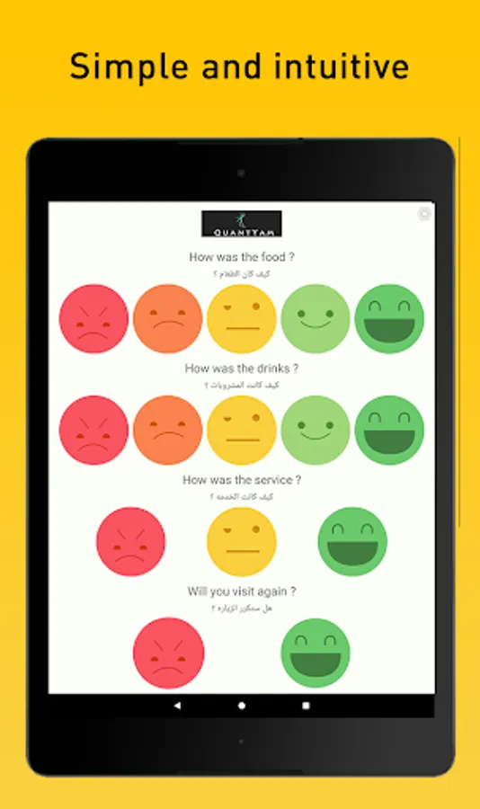 This survey app to capture feedback, you get to easily set up multiple questions with 5 rating options, and your customers just need to spend a couple of seconds to go through the survey and provide their feedback.