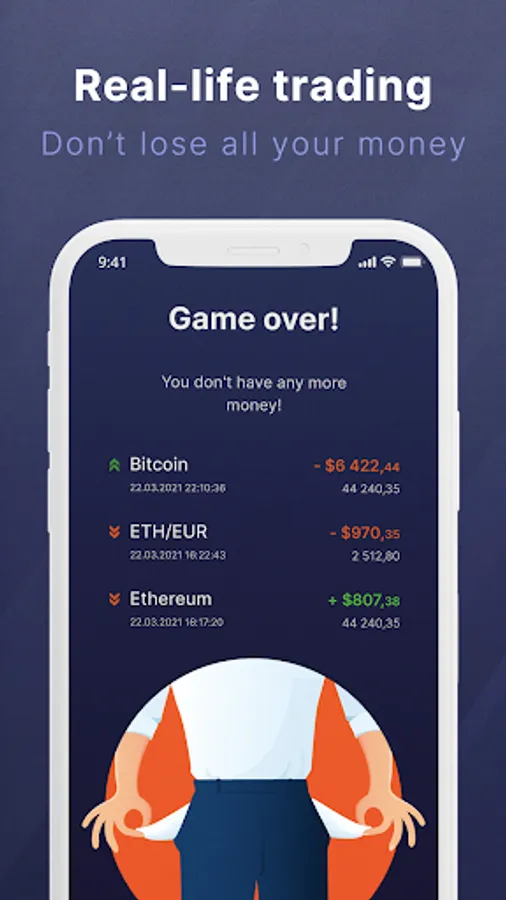 You don't have to register a Bitcoin or Ethereum wallet, everything is already prepared in the game. When you start playing on the rate of cryptocurrencies - you get $ 10,000 to your virtual account to understand how to start investing in currencies, to understand what is the stock and currency market. In other words, you get free currency to start your trading practice and your first cryptocurrency investment.