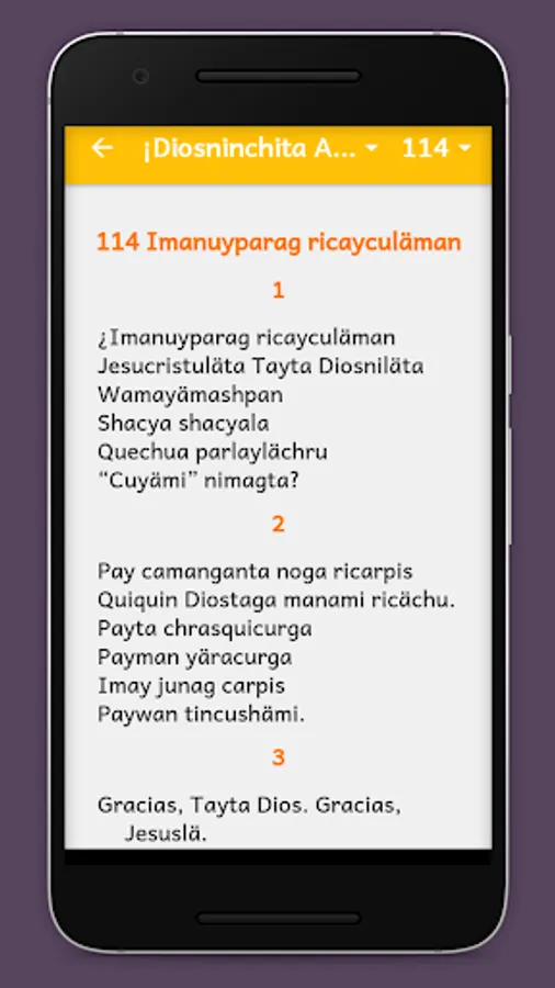 Ambo-Pasco Quechua Hymnbook Screenshots