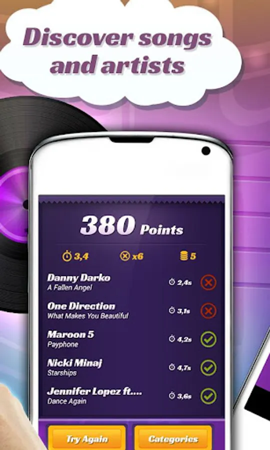 Choose your favorite music genre and guess the song title as fast as you can.
