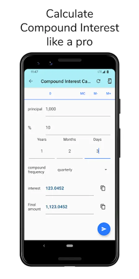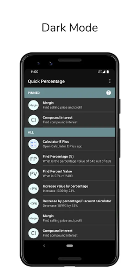 Free and All in one percentage calculator app with 11 handy percentage calculators with convenient features like easy copy-paste, memory keys, dark mode, support for shortcut widgets and direct result sharing.