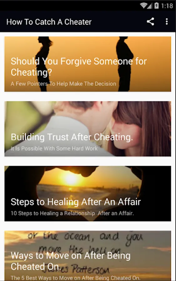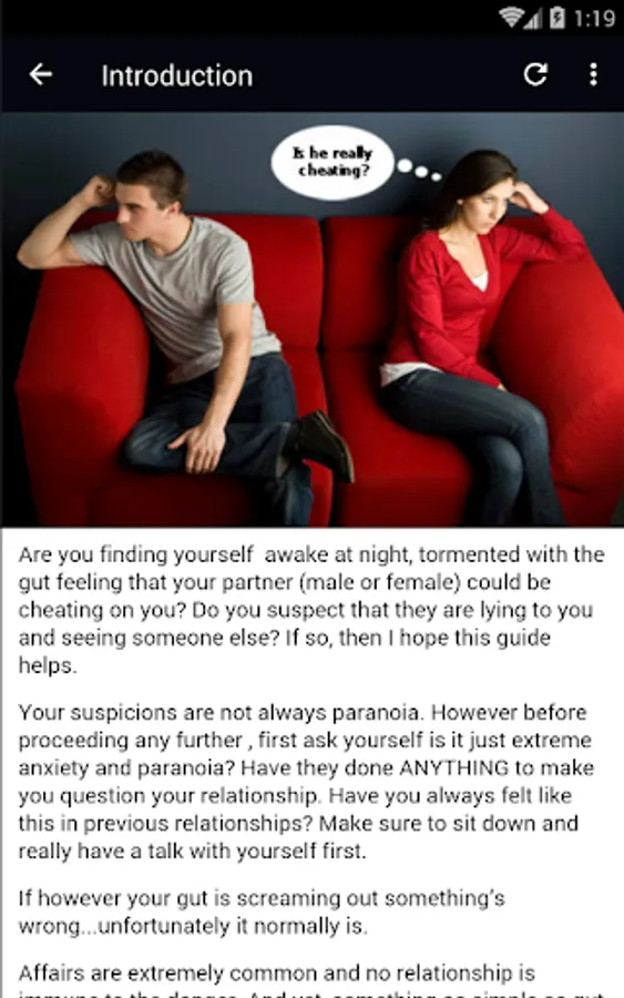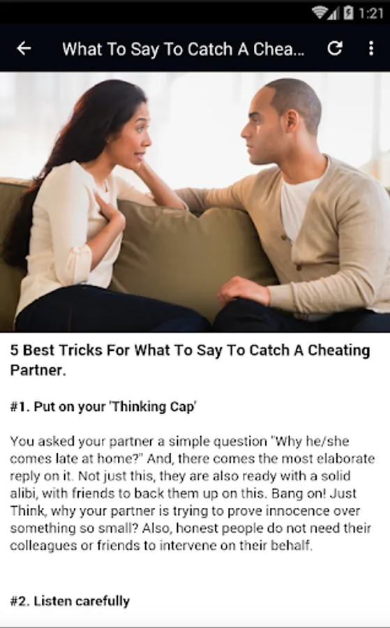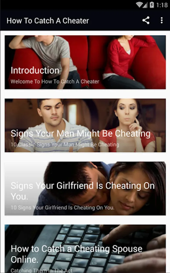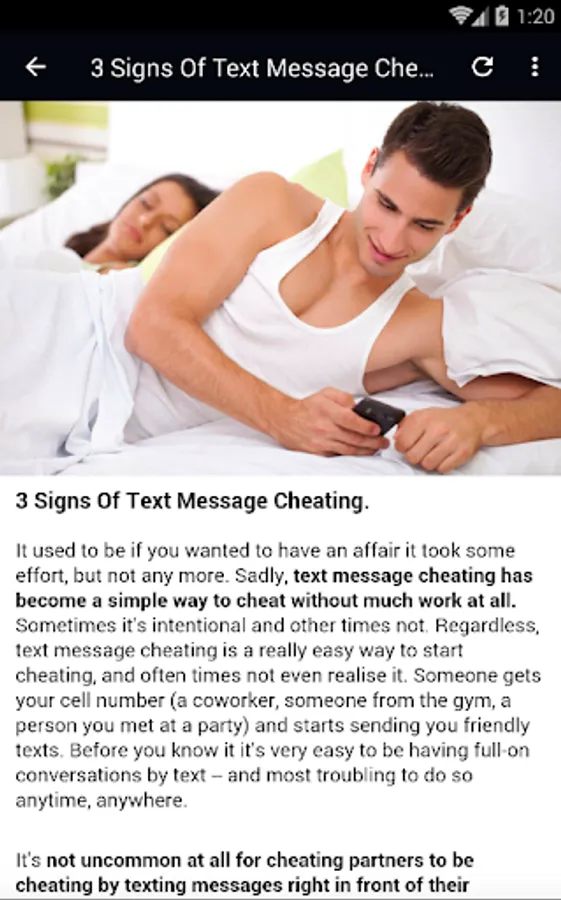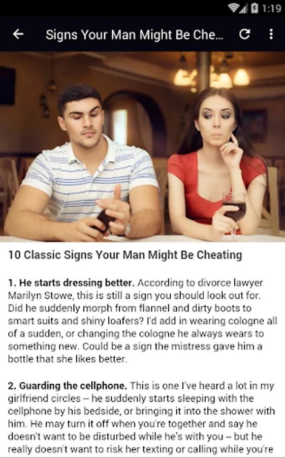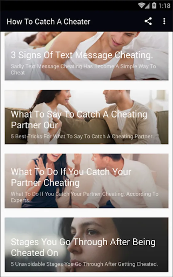 Question is would you be able to recognise the signs of infidelity in your own marriage or long term relationship? Curious about the signs of a cheating husband or signs of a cheating wife? Then this cheating app is just for you!