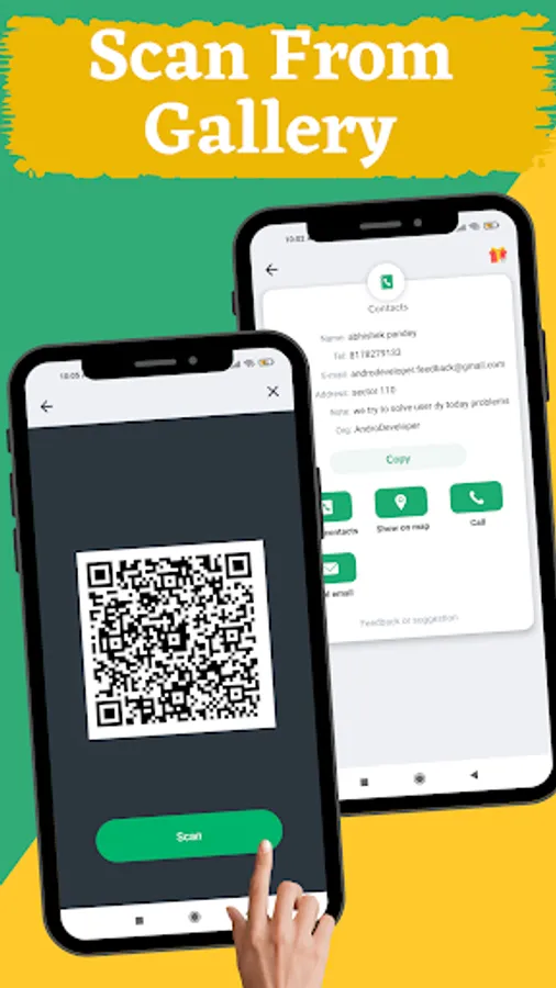 Looking for a QR code scanner for Android? QR & Barcode Scanner for Android allows you to scan all kinds of QR codes and barcodes, including contacts, products, URLs, Wi-Fi, text, books, E-mail, location, calendar, and more. It's the best QR code reader and scanner that you deserve.