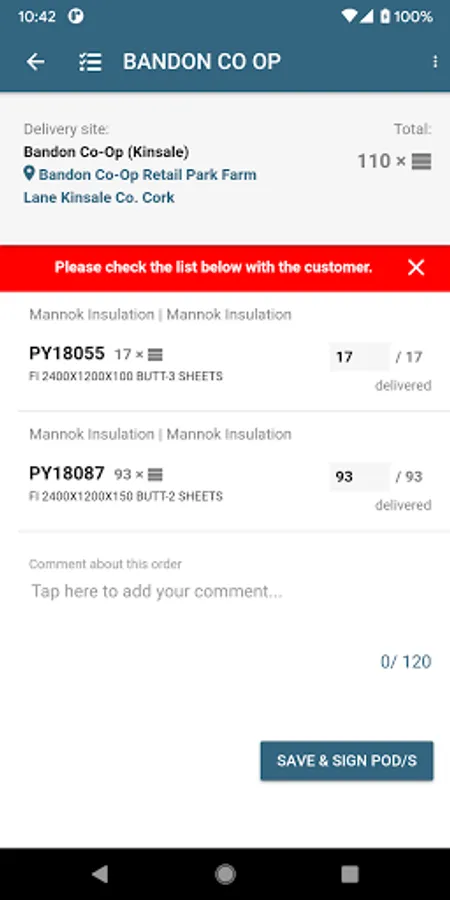 - Confirm delivery (including customer signature)