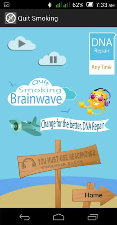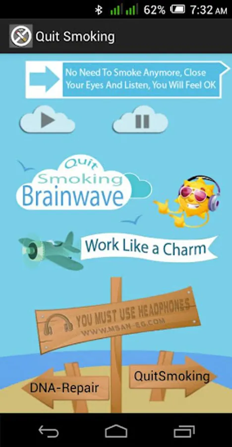 The "Quit Smoking Brainwave" Depending entirely on the difference in frequencies of each tone between both ear signals that affect your hormones, there is No any Side-effects, it's just like your favorite song that can change your mood.