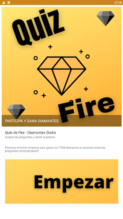 If you know a lot about Fire you are in luck, because in this application, if you manage to accept all the questions without any errors, we will reward you with a recharge to your Fire account of 3000 DIAMONDS !! Sounds good right? Well what are you waiting for? Download it now and get your reward yaaaa