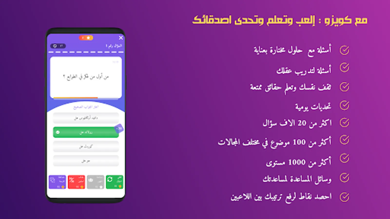 مميزات لعبة كويزوا أسئلة وأجوبة ثقافية :