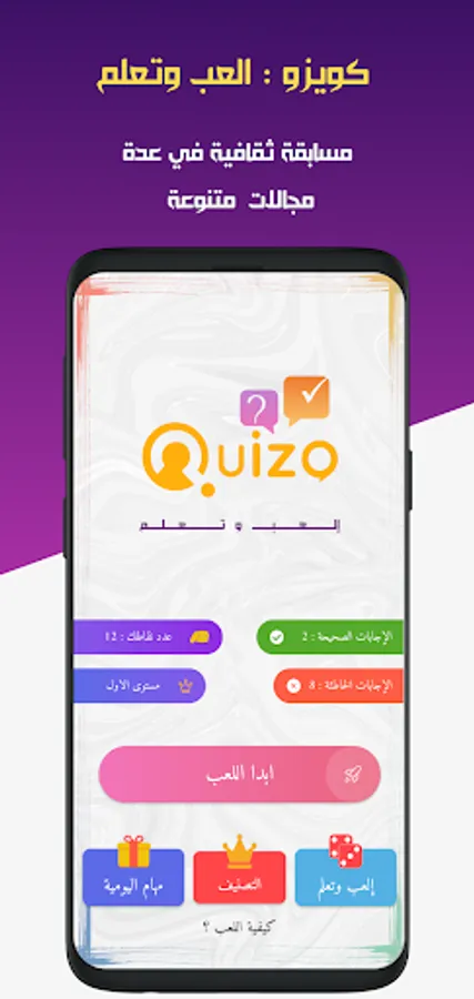 كويزوا لعبة سؤال وجواب مسابقة ثقافية عامة لعبة تتيح لك فيها اختبار معلوماتك و وتفكير خارج الصندوق
