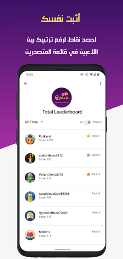 يمكنك تحدي اللاعبين أو الأصدقاء الأخرين بتجاوزهم في النقاط و المستويات و ذلك بمشاهدة ترتيب اللاعبين اليومي أو الأسبوعي .