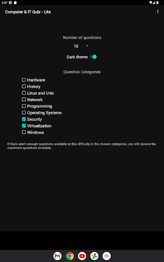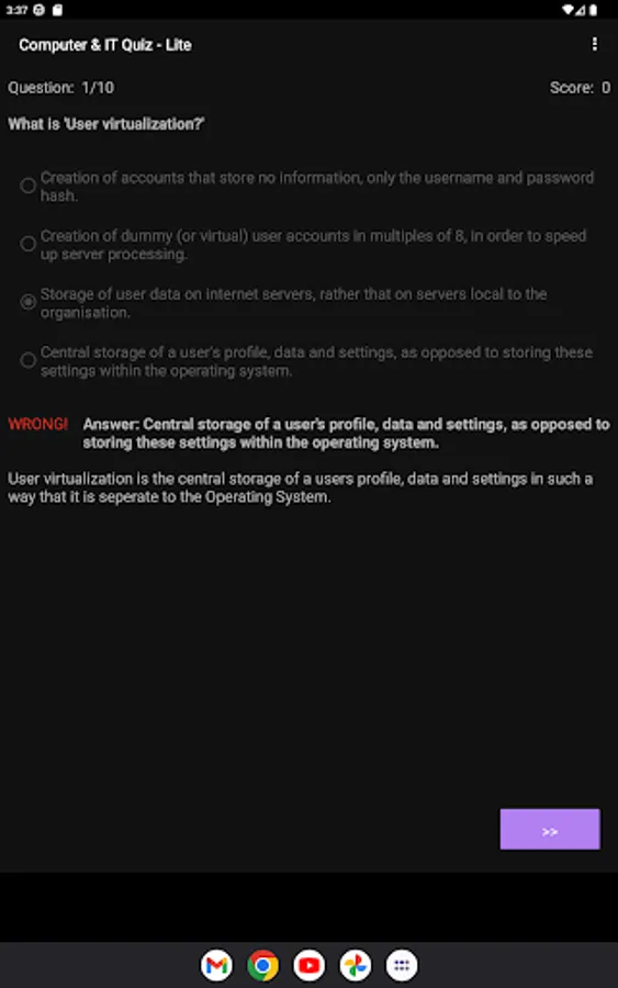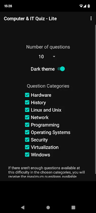 Your quiz question categories can be customised, so you can practice questions on your favourite IT subjects.