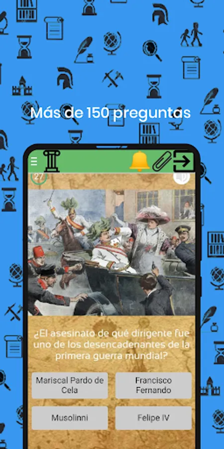 ➞ CURIOUS DATA: there are some questions in which we offer the player new curious data ➞ A LOT OF CONTENT this application includes hundreds of historical facts from Spain, France, England, Germany, the United States ... from all over Europe, Asia and around the world , including civilizations, scientific inventions, wars, religions ... And much more!