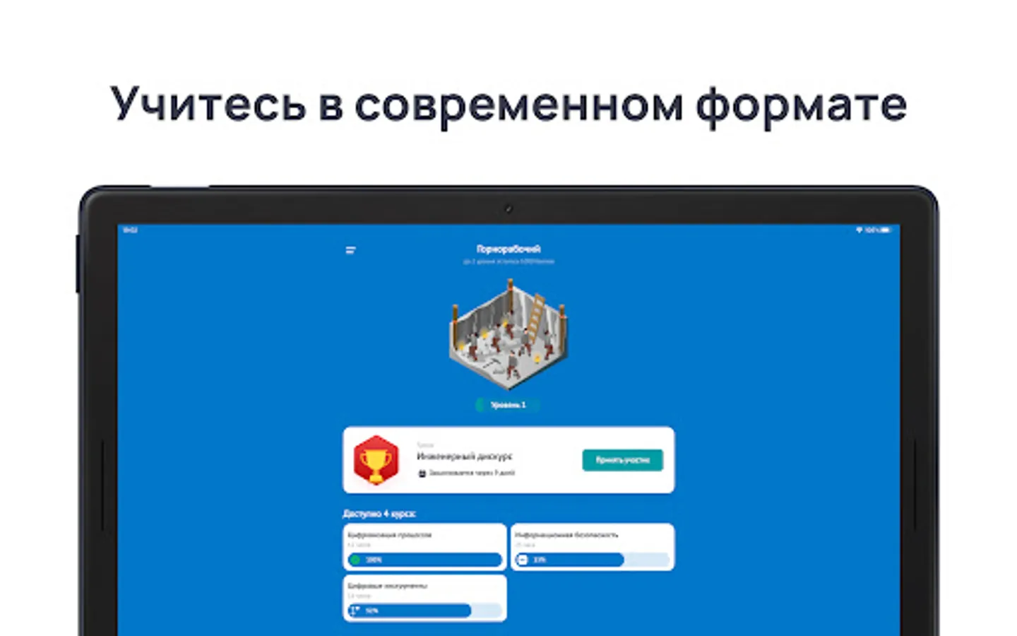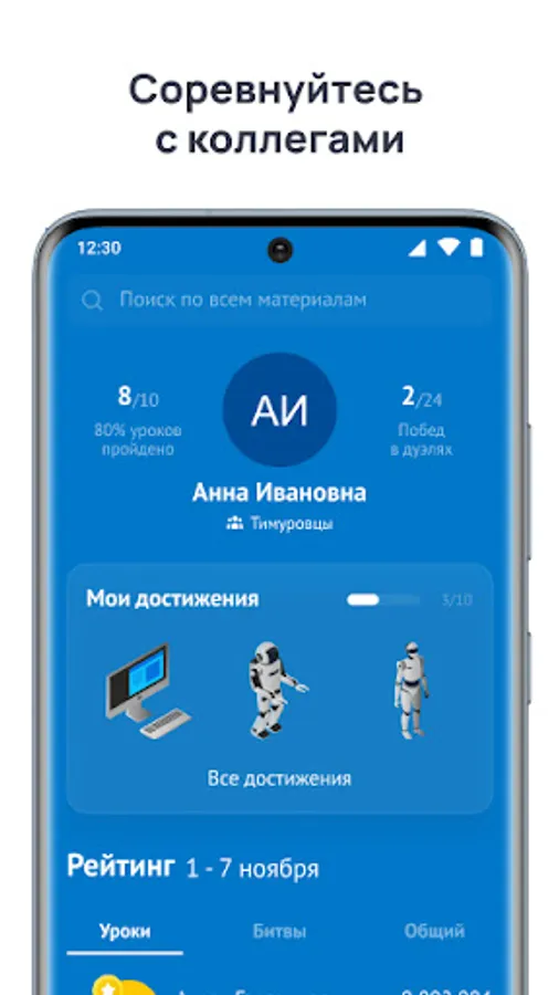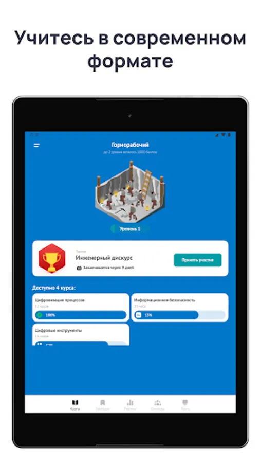 The application will help you learn the basics of modern technology and "digitalization". Convenient training format, game tests, tournaments and "star" ratings among colleagues.