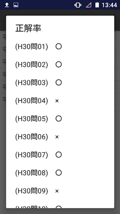 5. When you tap the correct answer rate, the correct answer rate for each year, for each question, whether the correct answer will be displayed with ○, ×. At that time, press the problem number to display the problem.