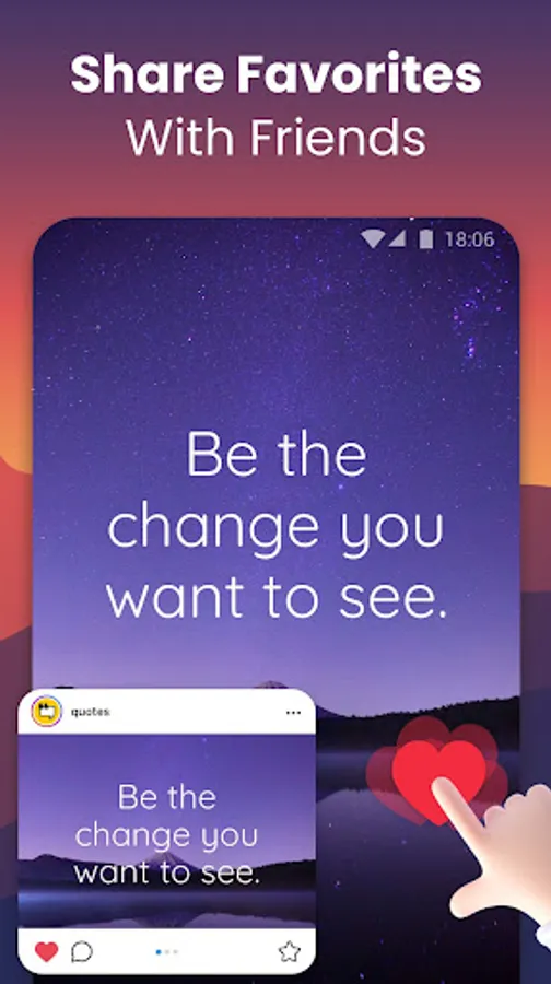 ● Within one tap, share favorite quotes with your loved ones or on social media platforms to spread motivation.