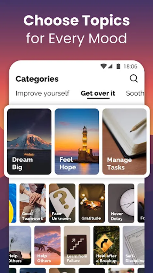 Rome wasn’t built in a day. To improve yourself, you need consistent daily reminders. Using QUOTES, you will find quotes inspiring you the most and believe in your own power day by day.