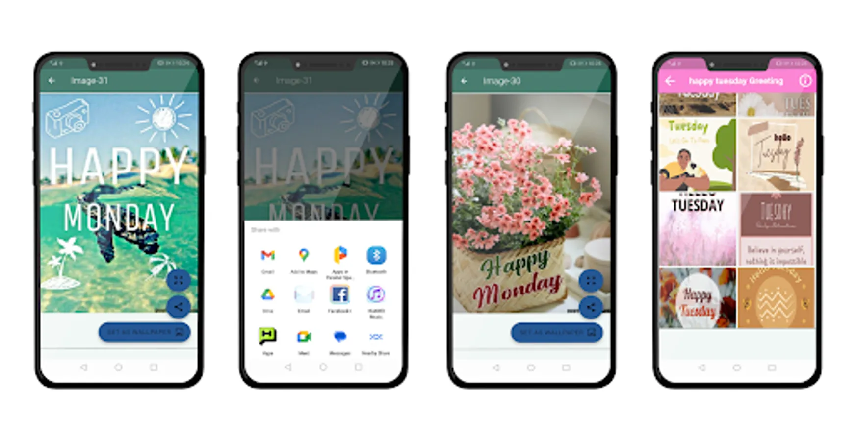 with this free application happy days of the week quotes and messages you can Save & share Good Morning and happy day of the week for every day to your family and friends like Good Morning for new week Wishes Quotes Poem for Life and Images for lover and Good evening images with nature and Good afternoon images with flowers plus Beautiful Tuesday Morning Images with quotes.