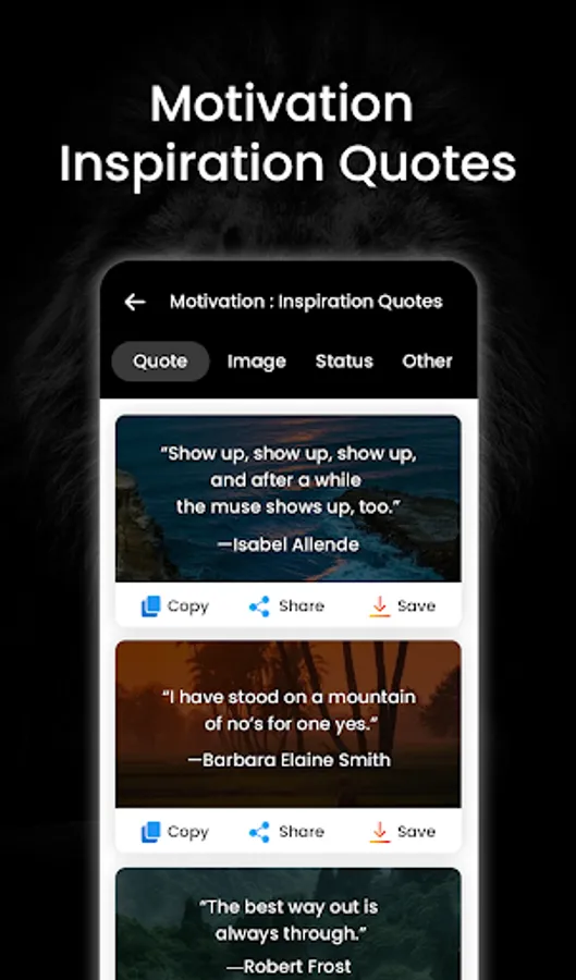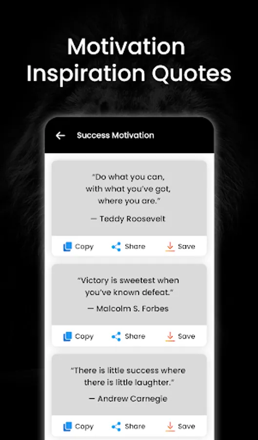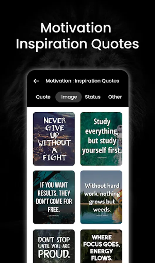 Motivation and inspiration are important factors that can help people achieve their goals and lead successful lives. Our app includes quotes that cover a wide range of topics, including success, health and fitness, education, and more. Whether you're a student looking for inspiration to achieve academic success, a fitness enthusiast looking for motivation to stay in shape, or anyone else looking for a little extra motivation in their daily lives, our app has something for you.