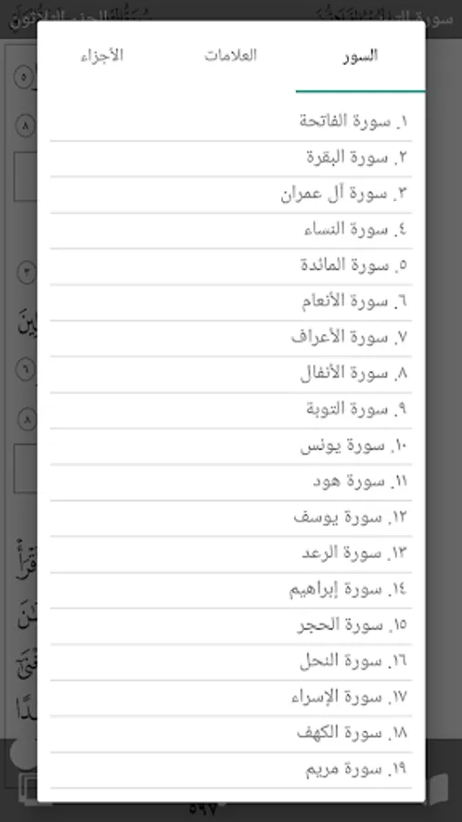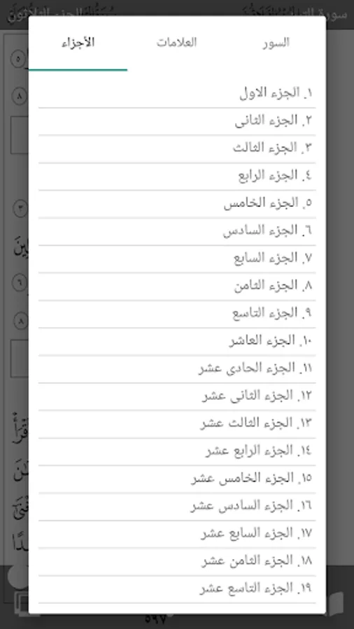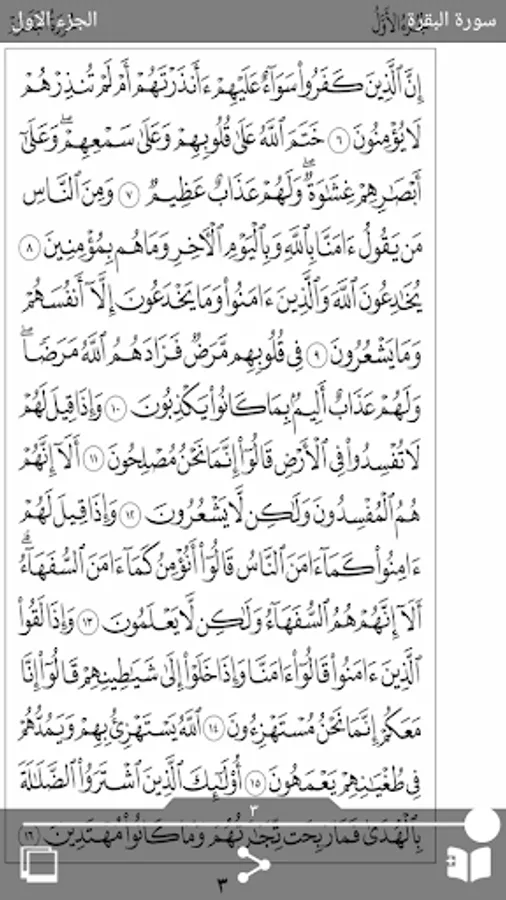 The ability to share across the page by sending icon Post to share the Holy Quran pages through social networking programs