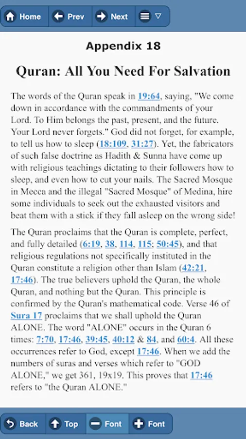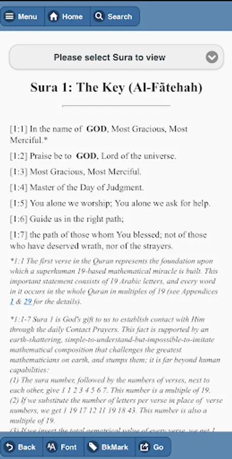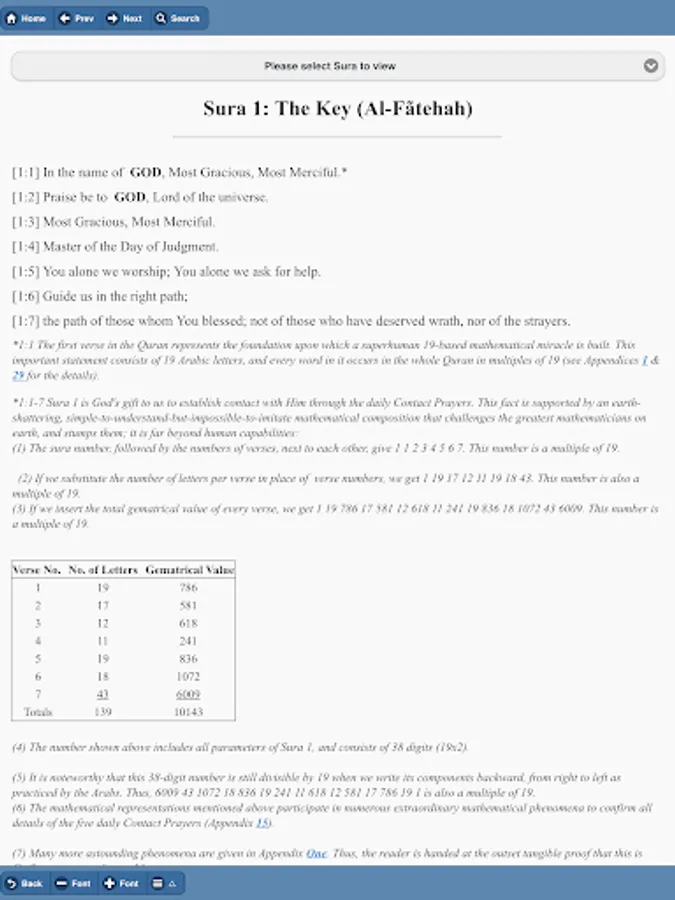 Read appendices to the Quran, e.g., discussing the mathematical miracle of the Quran