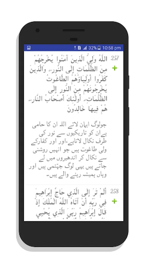In the name of Allah, the most Beneficent and Merciful and under the illuminating guidance of the Imam(as) of our time. Ahlulbayt software is proud to present before you this Holy Quran app for Android which features translations of the word of Almighty God in Hindi and Urdu. This application is an initiative taken by us to propagate the teachings of the almighty to audiences around the world by providing the Holy Quran in lucid and effective translations by renowned Shia authors along with the main Arabic text in an easy to read manner without any distractions.