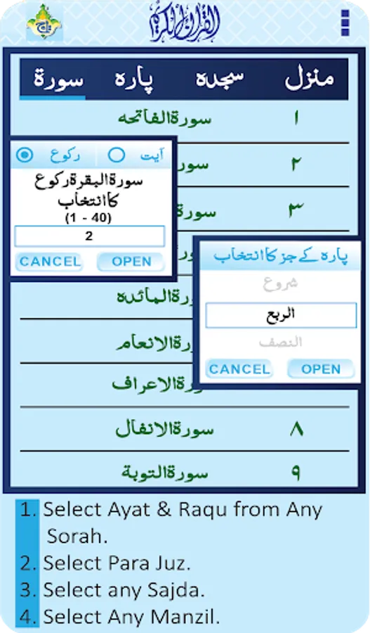 ** Search any Para, Surah, Ayat, Roku & Manzil