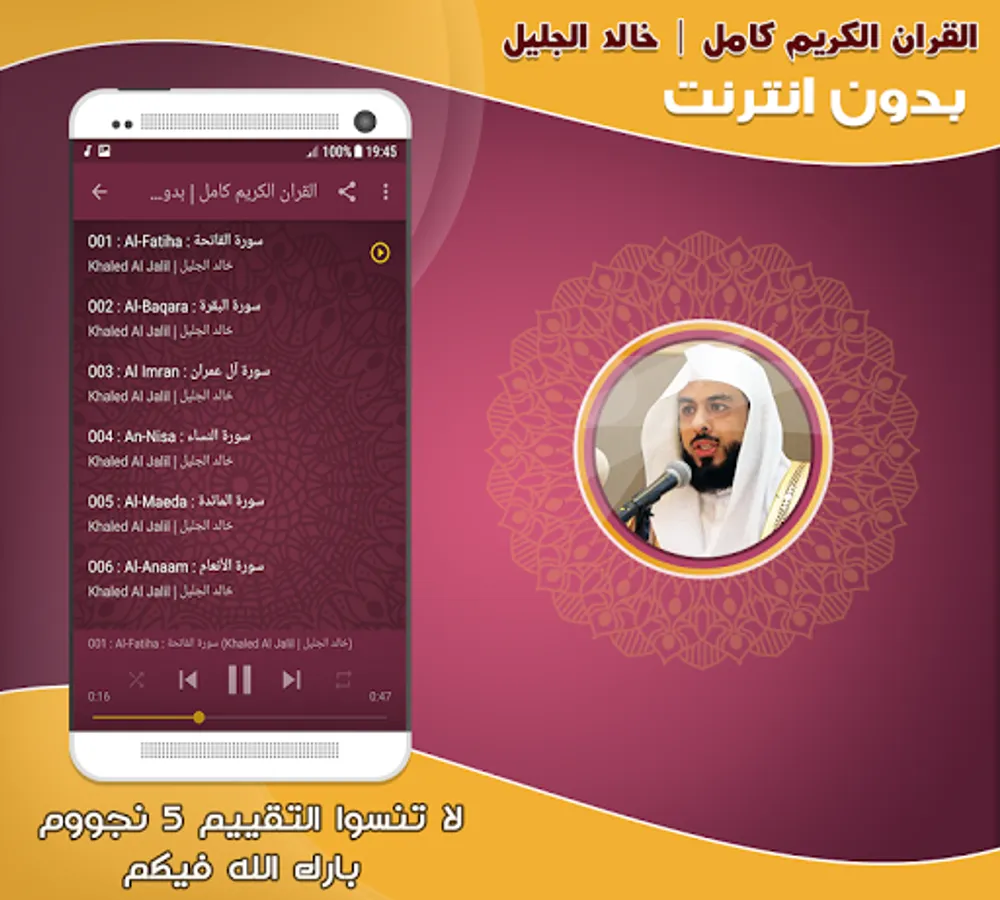- Recitations of the Noble Quran with the voice of the reciter Khaled Abdul-Jaleel, a wonderful voice enjoy listening to it without the Internet