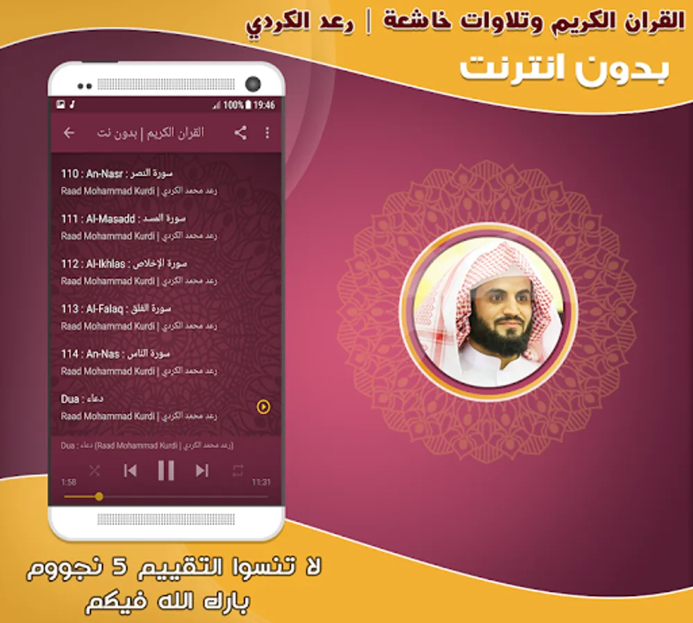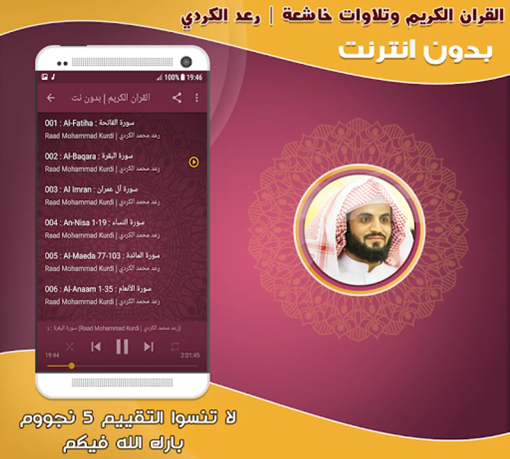 Recitations of the Noble Quran with the voice of the reciter Raad Mohammad Al-Kurdi, a wonderful voice enjoy listening to it without the Internet