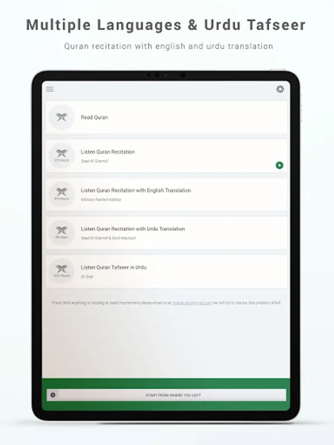Please send us your comment and feature requests on 💌 mobiquran@gmail.com and keep us in your prayers.
