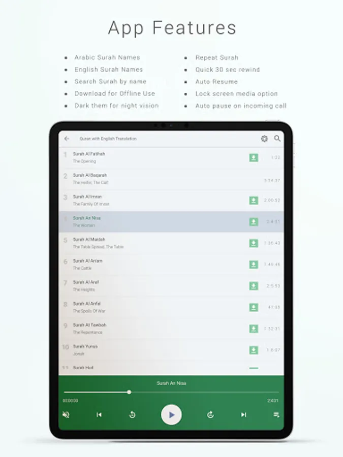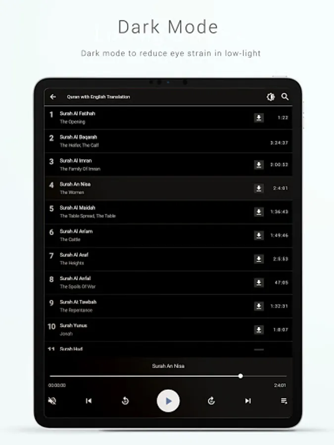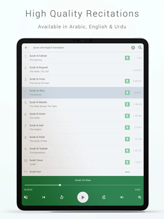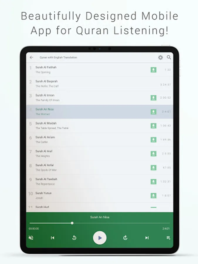 Easiest ever app for streaming HQ High-Quality MP3 Quran
