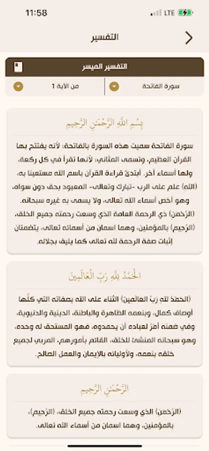 - Displaying an easy interpretation of the verses, with the ability to copy and share it with others
