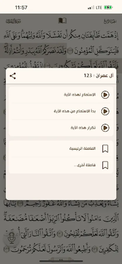 - The possibility of copying the verse and sharing it with others in the form of text or an image.
