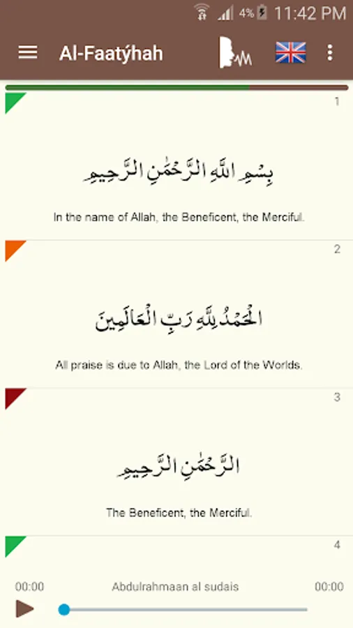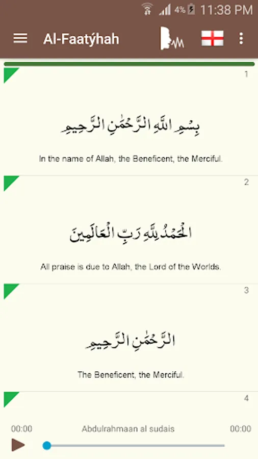 Ash someone is learning the Quran. He might need to learn to have the correct pronunciation or ayahs or just for the people who like to hear the sweet verses of the holy Quran to be recited. We have added in the main menu, the functionality of choosing the reciter you like. Just press the voice icon!