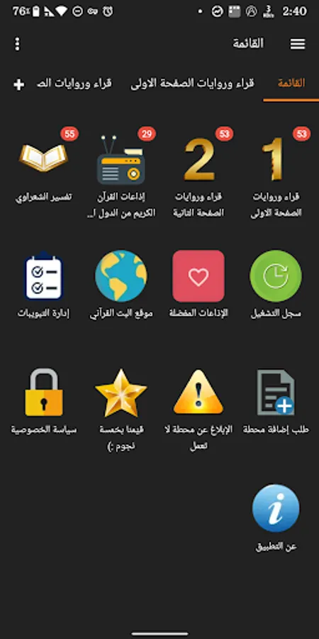 Listen to the Noble Qur'an at any time and around the clock through the Quranic broadcasting site, we have provided more than a hundred broadcasts of the Holy Qur’an to various readers and some novels so that you can listen and choose your favorite reader. Also available is a section for the Noble Qur’an broadcasts as well as religious radio stations from Arab countries, also we have provided you with a section Al-Shaarawy complete interpretation of the Holy Quran.