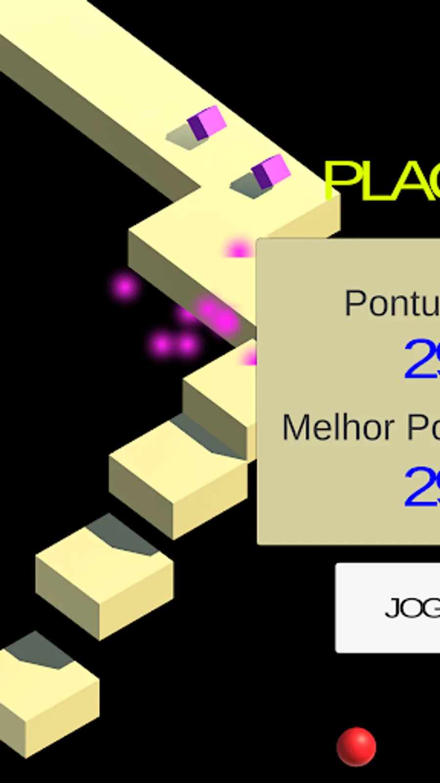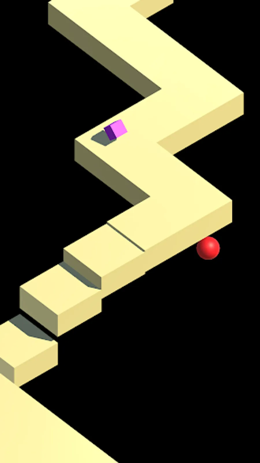 This is a very simple game casual platform where the player controls a ball with just taps on the screen. At a touch the ball changes direction, making it possible to control without dropping in a vacuum. The longer you stay on the platform, the more points are acquired. To get more points how many diamonds are required. Every second on the platform, get 1 point and every pink diamond to get 10 points wins. A screen with the title game and highscore are displayed each time you start the game.