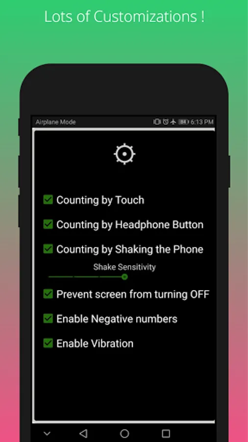 It can be customized to count by touching, pressing the headphone button, or shaking the phone