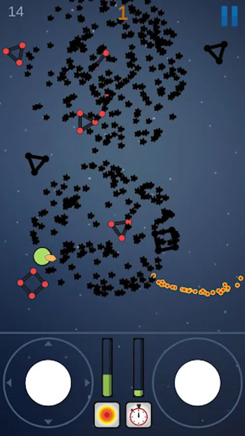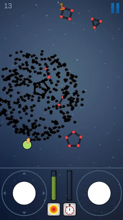 A 2D shooting game where you shoot and split polygons into smaller polygons. The polygons are completely physics simulated. Use your "Slow motion" power to plan and shoot precisely.