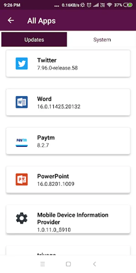 Android app update and info app can be used to know the list of apps which have updates in play store. In addition to that android app updater app gives easy access to uninstall and visit google play store which out any hassle.The app also gives a short description about the app and the details related to the concerned android app.Info section of this app is nothing but the same as in Android Hidden Settings.In future updates the app will be updated with more updates relating android phone Info and other new features.