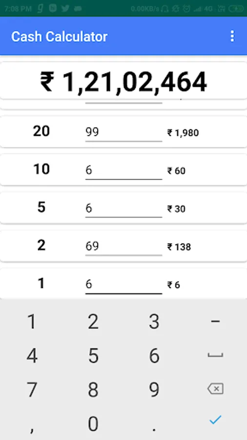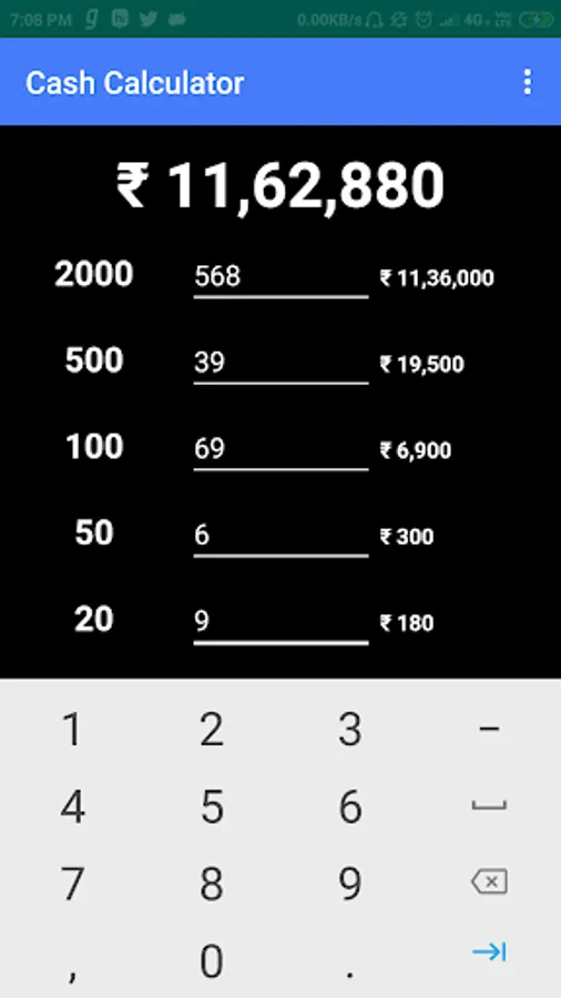 This calculator is used to calculate the sum of the amount in each denomination at ease.Many more updates to come.