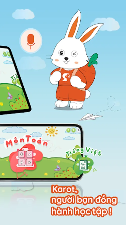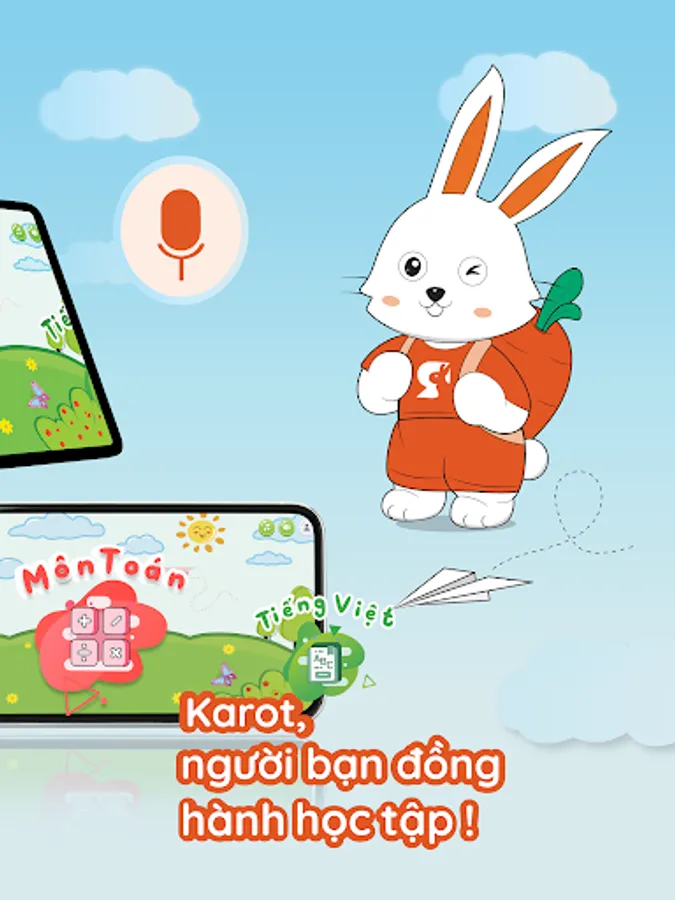 The application is designed with colorful images, cute icons, friendly interface and the friend who always accompanies on the journey to conquer knowledge with children is Karot.