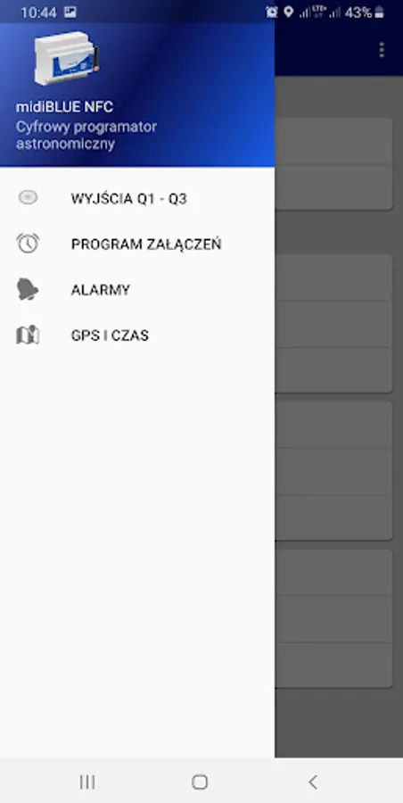 midiBLUE NFC is an application for smartphones operating in the Android system and equipped with the NFC wireless communication module. Allows you to control the midiBLUE NFC clock. Thanks to the midiBLUE NFC application, you can read the operating parameters of the controller, if necessary change them, all you need is to bring the phone closer to the controller.